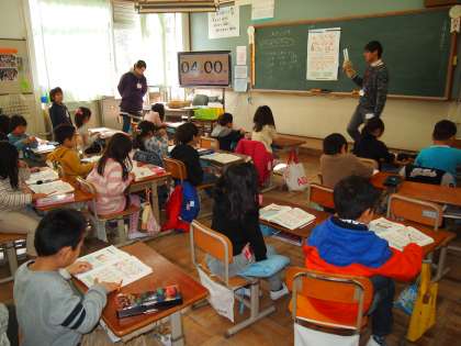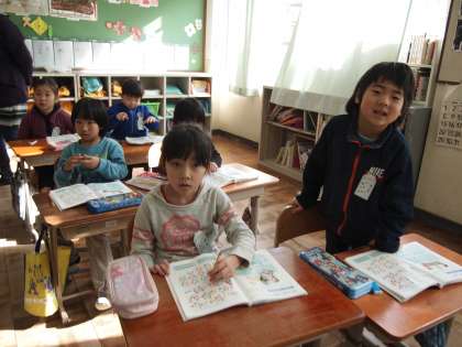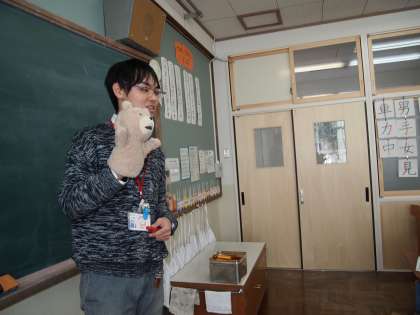 1年2組に行ったらペットくんが来ていました。何をしに来たのでしょう?