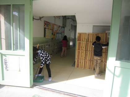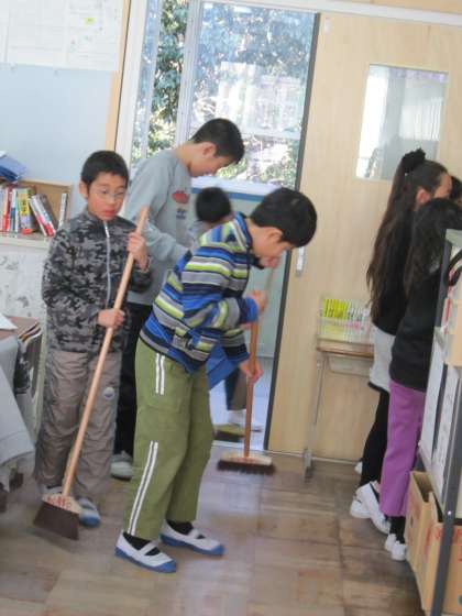 いろいろなところをきれいに,はこうとしている子たちがいました。