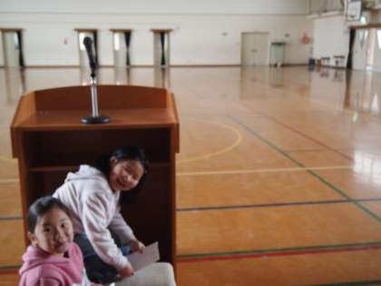3連休明けの久しぶりの練習です。始まる前に先に来た子どもたちが鬼ごっこをしたり,「あとから来た人を驚かそう…」と言って演台や階段の下に隠れたりしていました。ずっと様子を見ていましたがとっても可愛らしかったです。