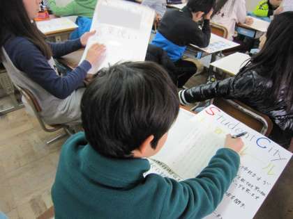 5年生は,スチューデントシティ学習を終えて,自分たちが学習したことをまとめています。
