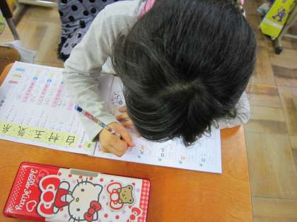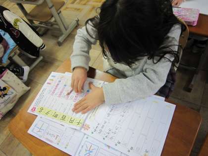 漢字ドリルを使っての漢字の練習にも取り組む1年生でした。