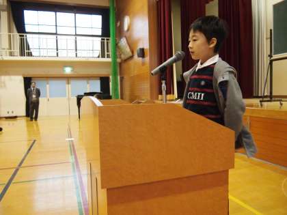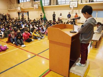 1年生の頑張りの前に全校の子どもたちも固唾を飲んで見守ってくれています。