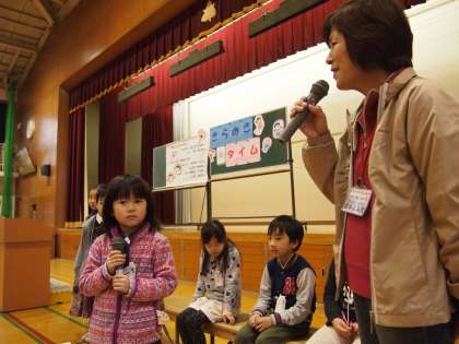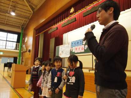 6人には担任の先生が感想を述べたり,質問をしたり…。それにも頑張って受け答えをしてくれました。