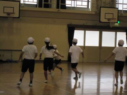 5年2組の子ども達は,体育館でバスケットボールを楽しんでいました。