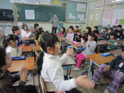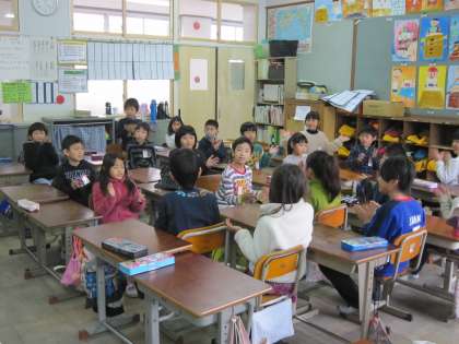 2年2組では,みんなで授業の合間にゲームをして楽しんでいました。