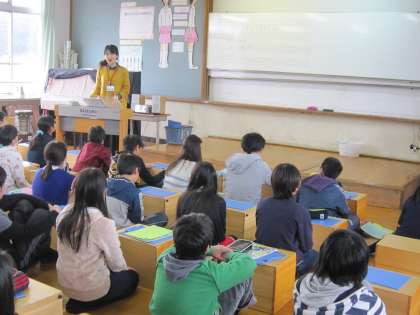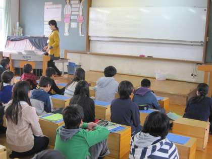 6年1組の子ども達は,音楽室で「日本の楽器の音色を味わって聞こう」という課題をもって学習していました。