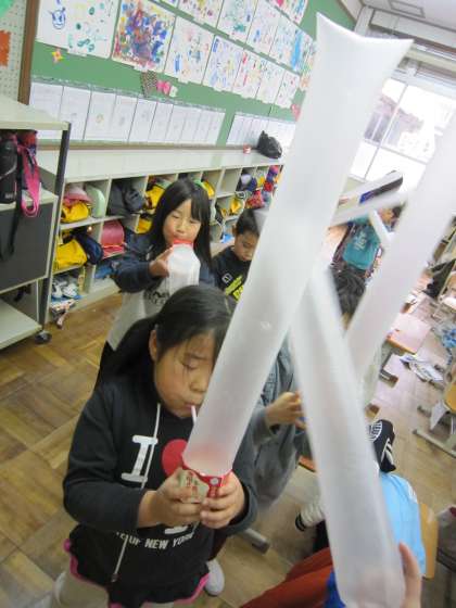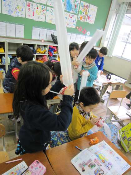 1年生は,図工で「ニョキニョキ とびだせ」に取り組んでいます。