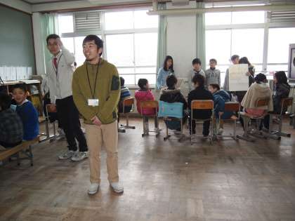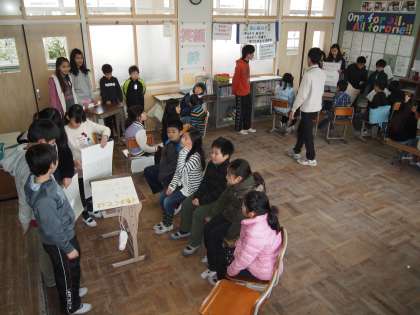 5年2組が4年2組に伝えています。12月に行ったスチューデント学習です。