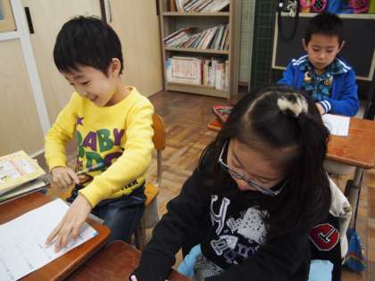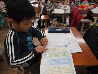 1年2組は漢字練習です。この前ならったところの漢字ですが…書けたかな?