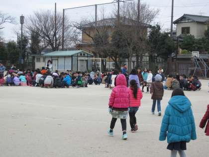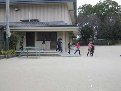 中間休み中に発生したという想定なので,子ども達は自分が中間休みを過ごしていた場所で一時避難をしました。