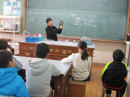 5年2組では,理科で「食塩を溶かすと見えなくなった。どこへいったのだろう?」というめあてをもって学習していました。
