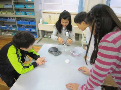 電子天秤で正確に測った後,実際に見ずに食塩を混ぜました。