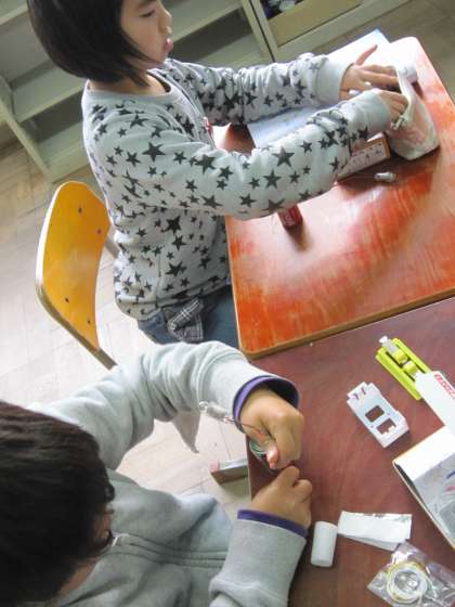 子ども達は,いろいろなつなぎ方をしながら明かりがつくがどうかを確かめていました。