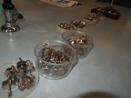 6年2組です。実験用のてこが左右でつりあうときのきまりについて考えます。