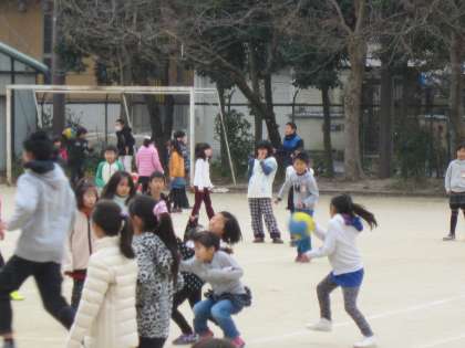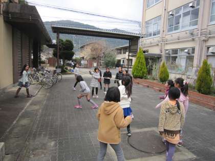 運動場だけでなく,中庭で縄跳びをする子たちもいました。