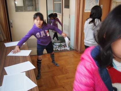 2月9日(月)の「きらめきタイム」はチャレンジ大会です。何年生でも応募できます。内容が優れた子どもたちの作文発表を学年を超えて全校に紹介します。今日の説明会には25人くらいが集まってくれました。
