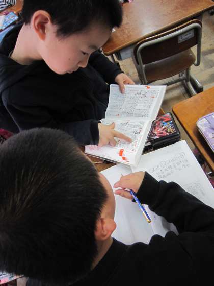 辞書を手に,組み合わせを考える子・ノートに書いてみてこんな漢字あるかなを考える子など取り組み方は様々ですが,組み合わせを考えるという点では,みんな一生懸命でした。