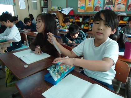 2年2組の算数です。「120cmはどんな表し方があるだろう」と尋ねられていました。さて…。