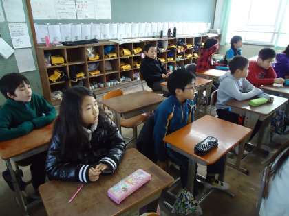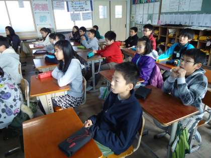 5年2組です。アルファベットが書けるかどうか…尋ねられているところでした。