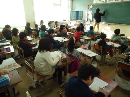 4年1組は小数の計算です。「小数点を打つ場所に気を付けて…」ですね。