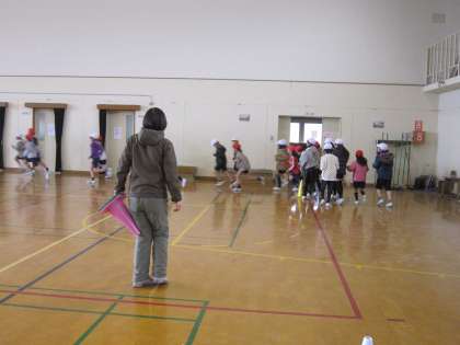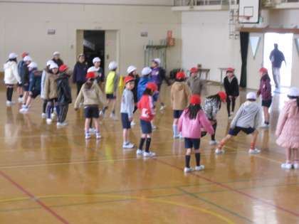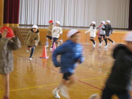 3年生は,今日は体育館で持久走大会の練習をしていました。
