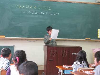 1組のある子は,「一生懸命に頑張っているとき」ににこにこすると答えられたそうです。順番に聞いてきたことを前に出て発表していきました。