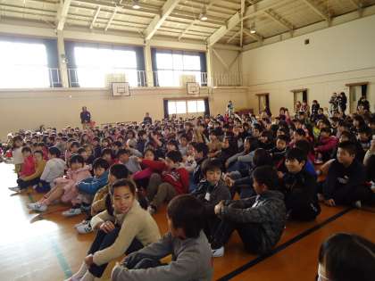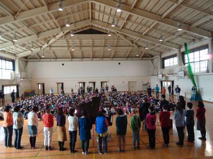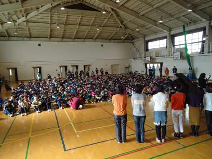 体育館のフロアーにずらりとメンバーの方々が勢ぞろいいただきました。