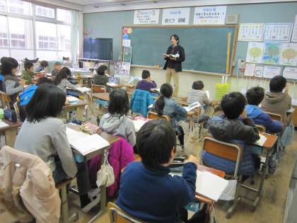 4年1組では,詩を楽しもうというところに書かれている詩を使って音読をしていきます。