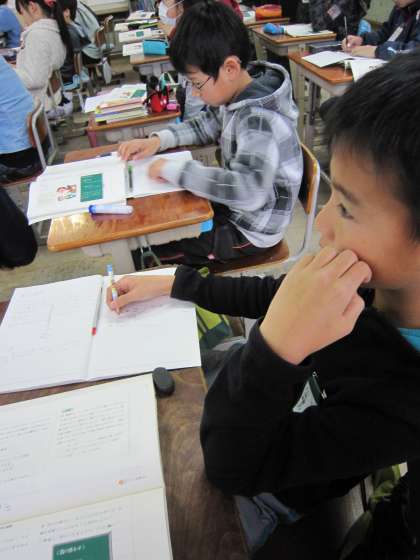 5年2組では,国語の学習で,「手紙と電話のそれぞれの素晴らしい点・注意が必要な点」について話し合っていました。