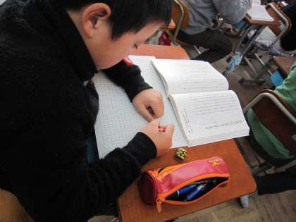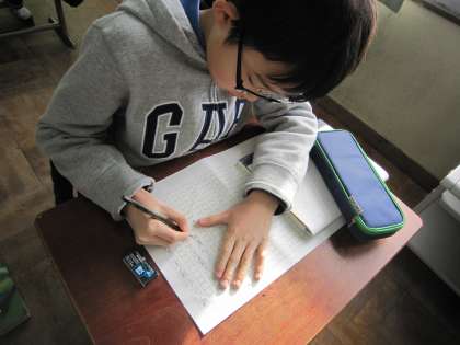 教科書をもう一度読み返しながら,自分の考えを整理しようとしながら書いている子もいました。