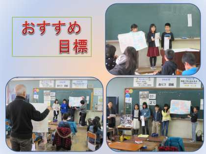 グループごとに,自分たちが考えた「おすすめ目標」「チャレンジ目標」を発表していきました。この目標は,冬休みの取組の中からできたことをもとに「おすすめ目標」を「できなかったことをもとに「チャレンジ目標」を考えたのでした。これからもこの日考えた目標を達成しようと頑張ってほしいと思います。