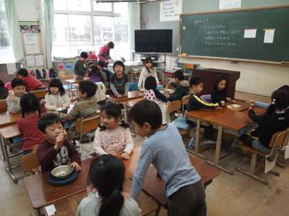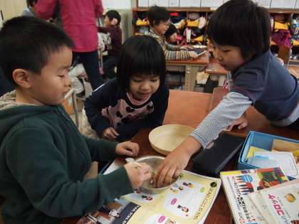 1年1組です。1年生の豆つまみ大会は2月6日(金)です。それに向けて特訓が始まったようですよ。