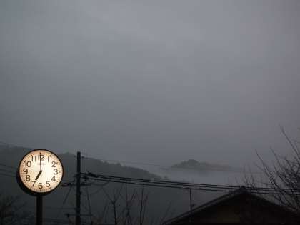 おはようございます。暖かい雨の朝になりました。時計塔の後ろの山が霞んで見えています。今日から中間マラソンが始まりますが…雨の降り方と運動場の水たまりが気になるところです。