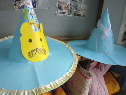 とんがり帽子とシルクハットふうの帽子なのですが,それぞれの個性が見られる帽子です。