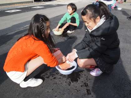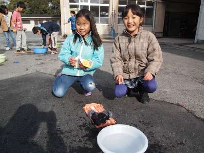 3年1組です。「むかしのくらし」の学習をする中で,今日は「洗濯体験」です。洗濯板を使っての手洗いで靴下やハンカチなどを洗いました。