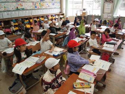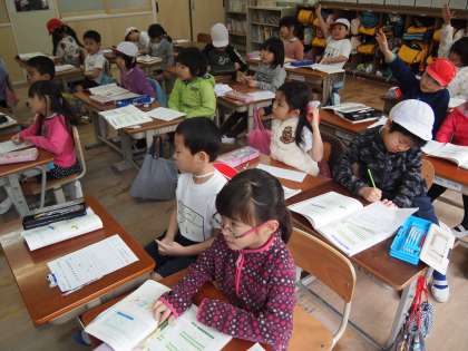 1年1組も同じです。先生の尋ねたことにしっかりと答えようとしていました。