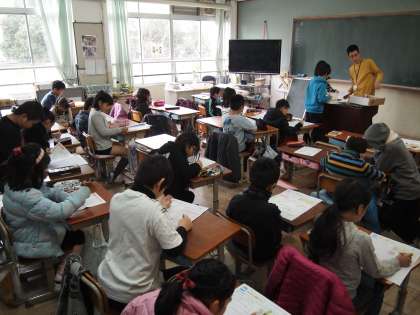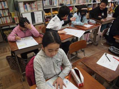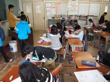 4年2組です。「調べ方と整理の仕方」のテストをやったり他の問題を解いたり…。がんばっています。