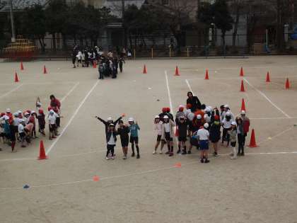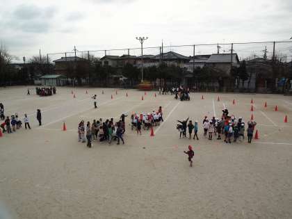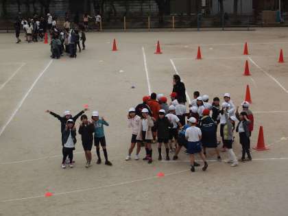 南校舎2階の会議室から撮りました。目ざとくカメラを発見してポーズをとってくれている子たちがいます。もうすぐスタートです。