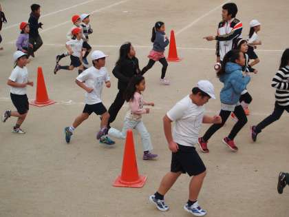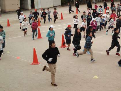 今年の中間マラソンはみんな楽しそうではありますが,一生懸命走っています。とってもいい感じです。