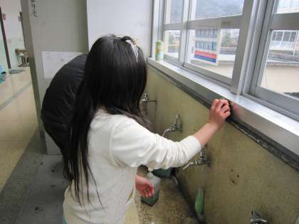 床をふいたり壁を磨いたりしていました。