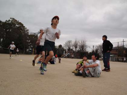 5年2組が走っています。朝に走り,中間休みに走り…体育の授業でもまたまた走っていますよ。