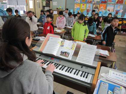 2年2組では,音楽で「ウンパッパ」を練習していました。