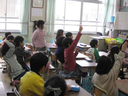 2年1組では,「ないた赤おに」というお話をもとにみんなで考えていました。