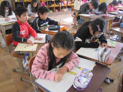 3年2組では,算数で「小数を分数にしたり,分数を小数にしたりして大きさを比べよう」という課題をもって学習していました。