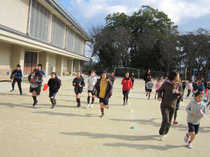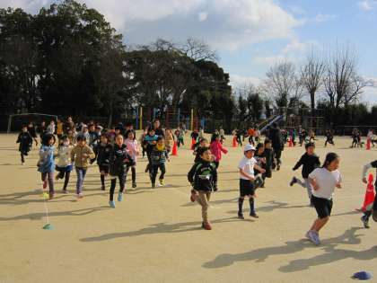 子ども達は,3つのコースに分かれて,みんな元気よく走っています。