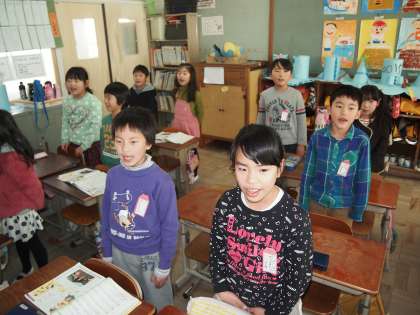 2年2組では校歌の練習をしていました。口を大きく開けて歌っていたのでとっても張りのある声が出ていて驚きました。交流に来ていたあおぞら学級の子どもたちもとっても美しく大きな声が出ていました。