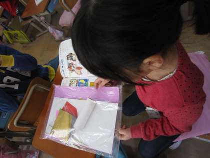 子ども達は,自分のお気に入りの色をもらおうと,希望の多い色ではじゃんけんで決めていました。