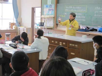 そして,LEDを使うときの+ーの接続の仕方など,実験をするにあたって気をつけておくことが話されました。