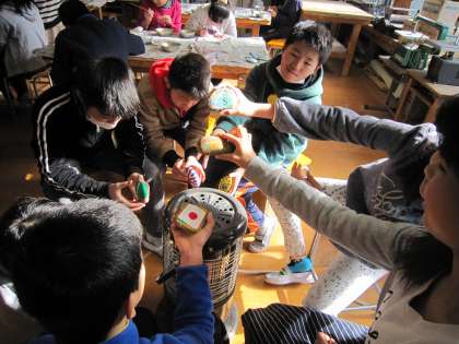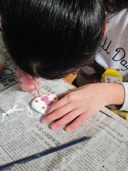 子ども達は,河原先生からお話を聞いた後,石に絵を描きはじめました。