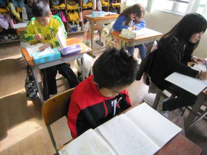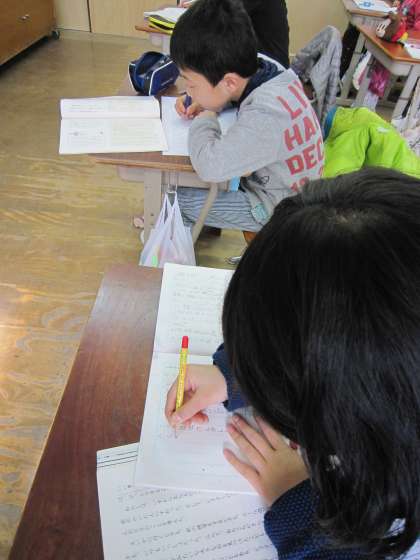 4年2組では,要約のポイントを学習した後,ごんぎつねか三つのお願いのどちらかの要約にチャレンジしていました。